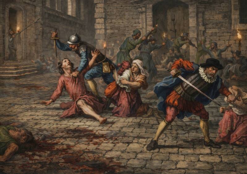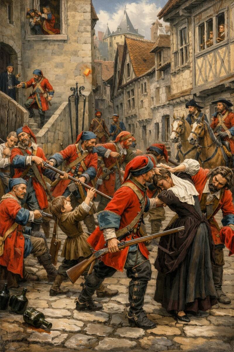 Par. 380 Un évêque, un curé ou un intendant marchant à la tête de soldats assemblaient les huguenots en un lieu public, le plus souvent la place centrale du village, puis exigeaient d’eux qu’ils abjurent leur religion. Les récalcitrants étaient livrés aux soldats. Ils souffraient alors mille tourments : insultes, viols et tortures. Les soldats avaient toute licence, sauf la liberté de tuer. On appela cette pratique les dragonnades, du nom des hommes d’armes en cause, les dragons, des militaires qui se déplaçaient à cheval, mais combattaient à pied.